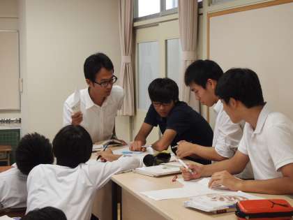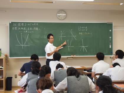 「関数の利用」の項目で、放物線と直線との関係を利用した問題を解いています。いくつか例題を考えたあと、問題を個人で、グループで考えました。修学旅行後でもすぐに気持ちを切り換えて頑張っている3年生です。