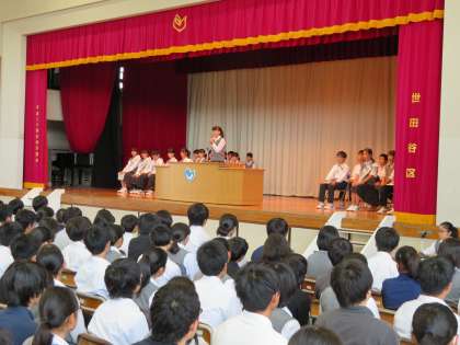 本日5校時、生徒会役員選挙が行われました。選挙管理委員から本日の選挙の流れ、注意事項などについての説明があり、いよいよ生徒会の中心が3年生から2年生へとバトンタッチされると感じました。(田村真)