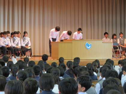 会長候補に続き、副会長候補の演説になります。2年生と1年生の候補からそれぞれ、どういうことに力を入れていきたいかという具体的な話もありました。(田村真)