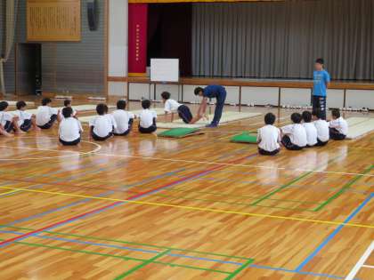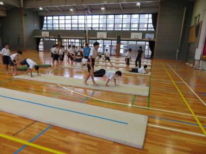 教育実習生の研究授業の様子です。天候の影響で体育館での授業になりましたが、生徒も一生懸命授業に取り組んでいました。実習3週間お疲れ様でした。(田村真)
