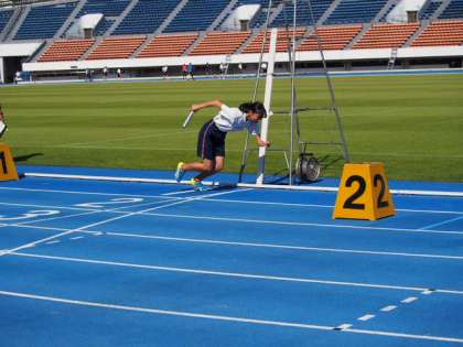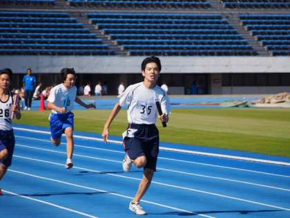 午後の予選です。男女とも400mリレーは、決勝に向け好スタートを切りました。