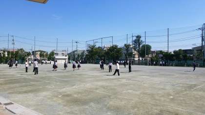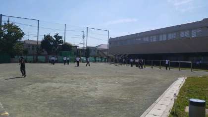 昼休みの校庭では子どもたちが元気に駆け回っています。