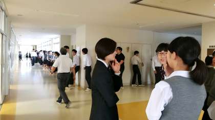 本日は校内にてあいさつ運動が行われています。1〜3年生の委員会所属生徒や有志が集まりあいさつを行っています。廊下や正門から元気な声が聞こえ、学校全体の活気もいつも以上に高いものになっています!