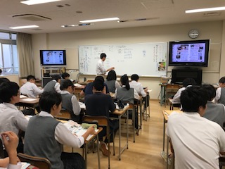 3年の社会の授業です。大正文化について学習しています。現代でも身近に親しむ音楽などの文化の中には、大正時代に作られたものがあることを学びました。(副校長)