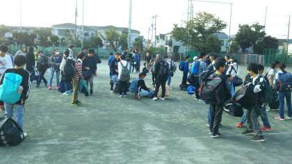 本日より1年生は二泊三日の河口湖移動教室が始まります。続々と校庭に生徒が集まっています。(田村真)