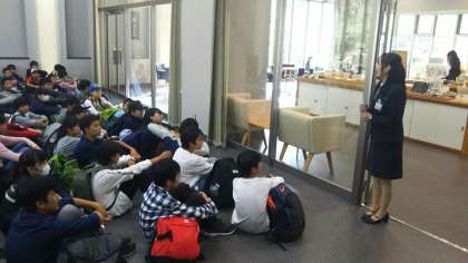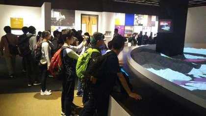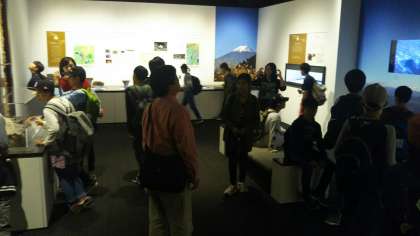 1、2、3組はふじさんミュージアムに到着しました。富士山の歴史について学んでいます。(田村真)