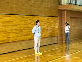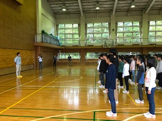 体育館で開園式を行っています。(副校長)