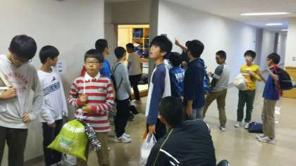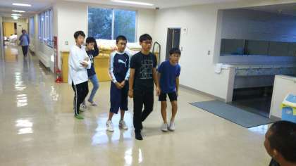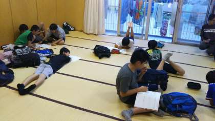 男子部屋の様子です。やるべきことを先に取り組み、それぞれの部屋ごとに楽しく過ごしています。(田村真)