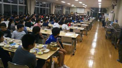 食事係の頑張りと生徒たちの時間を意識した行動もあり、スムーズにいただきますができました。いっぱい食べて栄養を蓄えてください。(田村真)