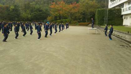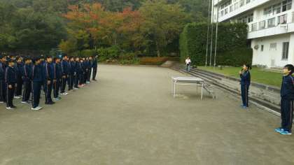 朝礼の様子です。眠い人も中にはいますが集合などしっかりできています。(田村真)