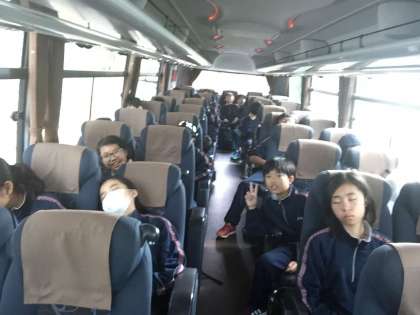 バスの揺れが気持ちよく眠そうです。 船橋希望中・山本浩靖