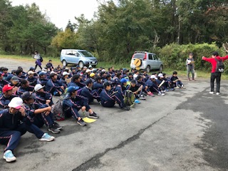 1組から3組は、紅葉台ドライブインからのスタートです。直前の説明を受けて9時30分に最初のグループが出発します。(副校長)