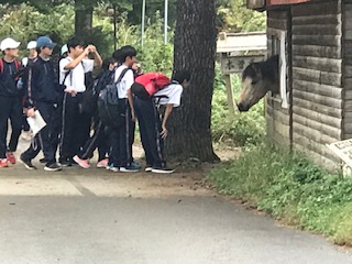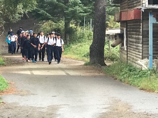1組から3組のグループが紅葉台ドライブインに次々と戻ってきました。雨が降り始めましたが、みんな元気そうです。(副校長)