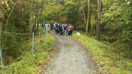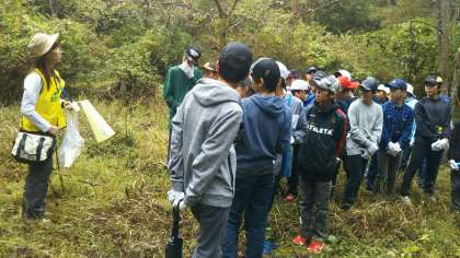 宿舎を出発し、清掃場所に到着しました。早速活動をはじめていきます。(田村真)