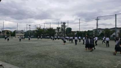 昼休みの校庭です。天気はいまいちなものの、男女混合でサッカーをしたり、鬼ごっこをしたり、バレーボールに勤しんだり…と、思い思いに体を動かしている様子が見られます。