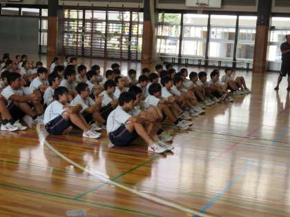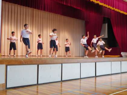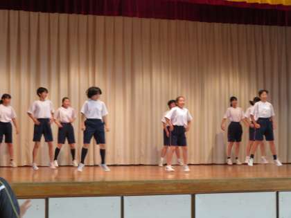 1年生の体育の様子です。今日はダンスの発表で、それぞれのグループが工夫をこらして全力でダンスを行っていました。どのグループもとてもすばらしかったです。(田村真)