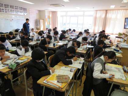 1年生の授業の様子です。今日から合唱練習に伴う特別時程になりましたが、どの授業も集中して取り組むことができています。(田村真)