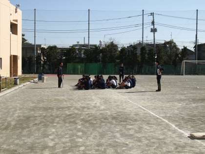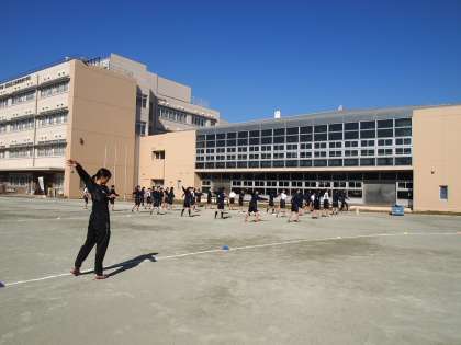 2年生の体育の授業です。いつものことですが、始業のチャイム数分前には集合完了。チャイムと同時に準備運動が始まります。フナキボでは‘当たり前のこと’ですが、実は素晴らしいことです。