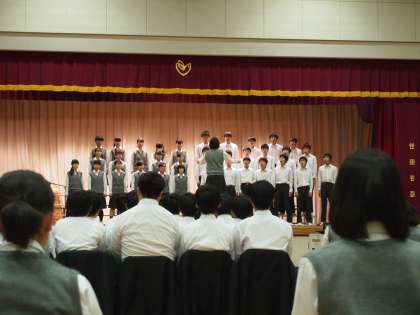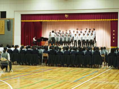 いよいよ合唱コンクールまで学校で練習ができる日が残り6日となり、今日は各学年とも体育館でリハーサルが行われました。7期生のリハーサルの様子です。体育館は張りつめた緊張感で満ちていました。