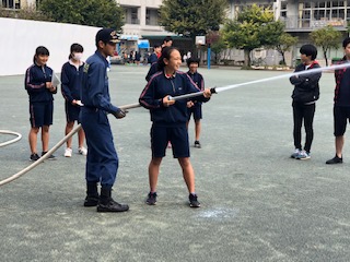 陸上競技部は早朝から練習し、その後地域の防災運動会に参加しています。