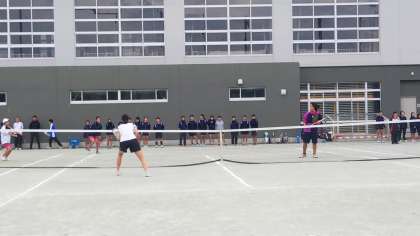 本日、女子硬式テニス部は世田谷中学校で行われた研修大会の団体戦に出場しました。初戦は世田谷中学校と戦い、3-2で惜しくも負けてしまいましたが、次の試合に向けて課題が見つかるよい機会となりました。