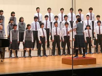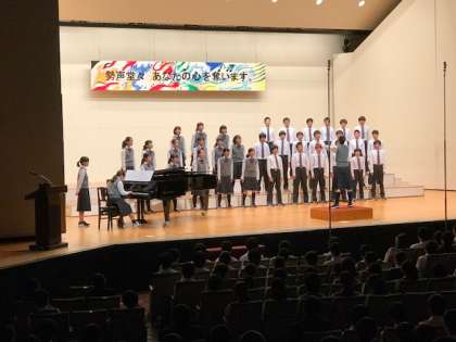 学芸発表会は今、2年生の合唱が行われています。心を込めた美しいハーモニーが会場いっぱいに広がっています。(副校長)