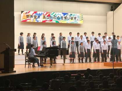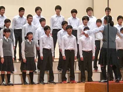 午後の発表が始まりました。今、3年生の合唱です。重厚感のある歌声が、聴く人たちの心を奪っています。(副校長)