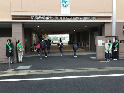 本日6日から3日間、1年4組保護者様による登校時あいさつ運動が行われています。朝早くから、ご協力ありがとうございます。(副校長)