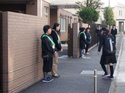 1年4組の保護者の方が担当するあいさつ運動最終日です。終了後「夕方学校に来ても部活の生徒が本当に元気よく挨拶をしてくれますね」とほめてくださいました。知らない人に自分から挨拶をするのは勇気がいりますが、少し勇気を出せると、その一日が幸せな気持ちになれますね。