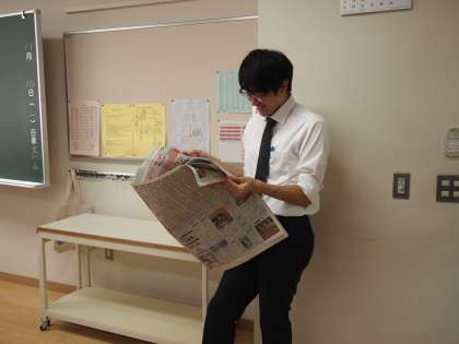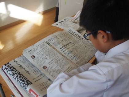 今朝はNIEタイムの新聞以外に学年だよりや体育委員会が発行した「体育新聞」も配られていて、まずはそちらを読んでいる生徒もいます。そして、今年度から各クラスに毎日2部配られている一般紙を読んでいる生徒や担任の先生の姿も見かけるようになりました。
