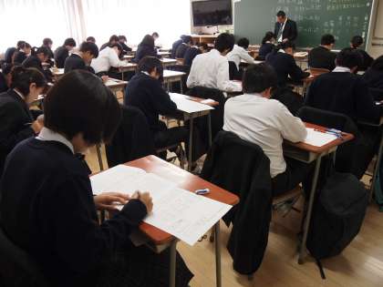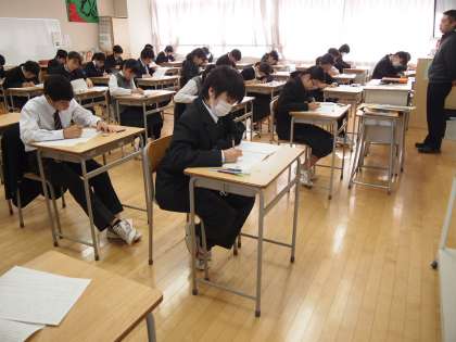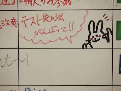 今日から期末考査が始まりました。この画像を撮ろうと職員室を出たところで、部活黒板に書かれているメッセージを発見しました。各階に行くと、それぞれに違う緊張感が漂っています。先程のメッセージを心に刻み、今日まで勉強してきた成果を100%発揮できることを祈っています。