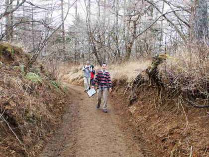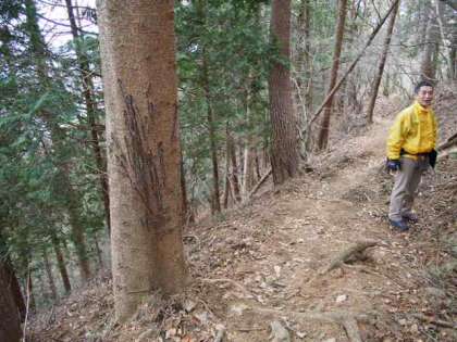 昨日から河口湖移動教室の資料編纂委員長として、河口湖に来ています。今年度の移動教室の日程がすべて終了し来年度に向けて改善点を探し、より充実した移動教室にするため、各中学校からの代表委員が手分けして各コースを回りました。私と一年生の山本先生は三つ峠コースです。途中動物にたべられた跡と思われる表面の皮がえぐられた木を何本も見つけました。