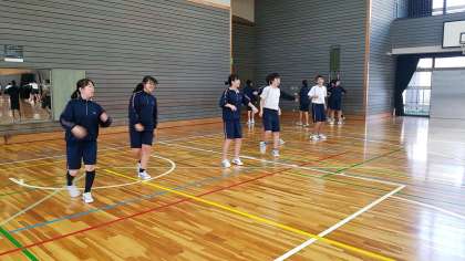 2年生の選択体育ではダンスの授業が始まっています。「チューチュートレイン」の曲に合わせて踊りますが、男女混合のグループで踊り、オリジナルの振り付けも入ります。