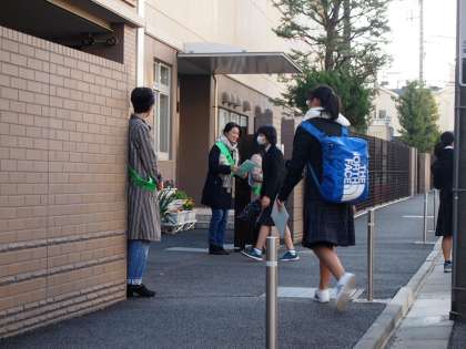 1年5組あいさつ運動最終日です。8時前から校門に立って迎えてくださる保護者の方には、いつもより早く起きて準備するというご苦労があるにも関わらず、すはらしい笑顔で生徒を迎えていただいています。本当にありがたいことです。