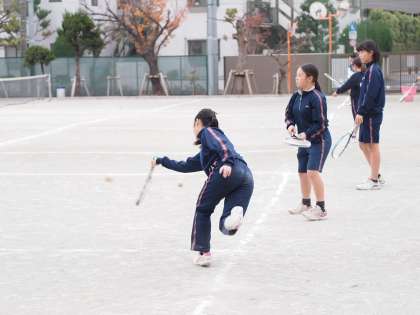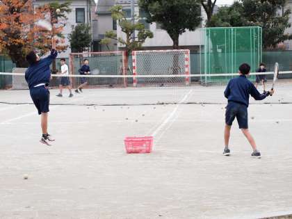 師走に入り最初の日曜日。校庭では、ソフトテニス部が練習をしています。硬式テニスとは明らかに違うやわらしいボールを打つ「ポーン」という音が気温11度の校庭こだまします。