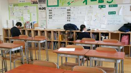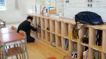 放課後の教室では、生活委員の生徒が棚や机の中を整頓し、置き勉のチェックをしています。また、美化委員の生徒は机を教室のラインにそって並べ、次の日も生徒たちが気持ちよく授業を受けられるようにしています。