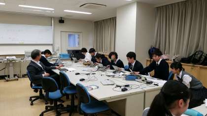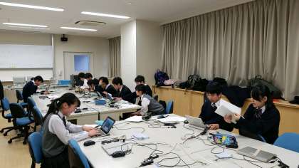 三者面談の放課後、2年生の学級委員はパソコン室に集まってクラスの反省の集計をしています。