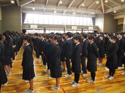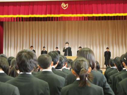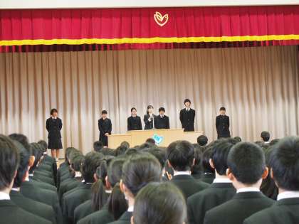 生徒会主催の生徒会朝礼は、整列も運営も生徒会が担当します。今日も生徒会や委員会からのメッセージを全体に投げかけ、呼びかけも工夫をして運営していました。聞いている生徒の態度も全校朝礼とまったく変わることなく、立派な態度です。こういうところがフナキボらしいところです。