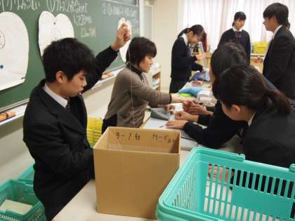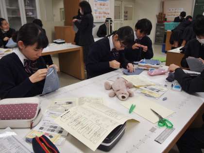 3年家庭の授業では、箸袋を作っています。3年生はに追われる時期ですが、このような作業には、没頭し集中できるので逆に気分転換になるかもしれませんね。