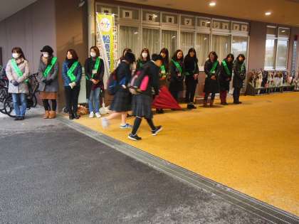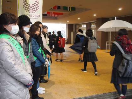 ここ数日の朝の冷え込みは本格的な冬の到来を感じます。そんな初冬の早朝から校門に並んで登校する生徒にあいさつをしていただいています。今日はいつもより生徒の出足が遅く感じられます。寒くなってきました。