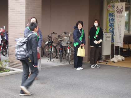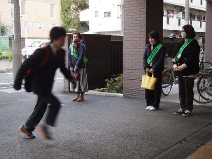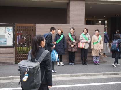 1年6組の保護者の方が、最低気温6度の中今朝も校門であいさつ運動に参加されています。寒さが増すととともに、生徒の出足も確実に遅くなり、校門に走り込んでくるフナキボ生も多くなってきました。