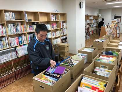 今、本校の図書館で選書会が行われています。先生たちが、生徒に読んでほしい本を探して、図書館に置く本を選んでいます。生徒の皆さん、どんな本が新しく入るか楽しみにしていてください。(副校長)