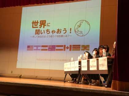5,6校時に体育館で中学生研修会が行われました。今年のテーマは「世界に聞いちゃおう!〜そしてあなたはどう思う?何を感じる?」。本校のオリパラ、世界ともだちプロジェクトの8か国について、その国を調べた1年生と、その国の大使館の方や長く生活された方、留学生などのプレゼンと、質問タイムがありました。アメリカの方は海外からネットで直接参加していただきました。(副校長)