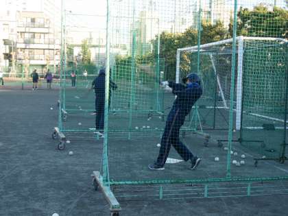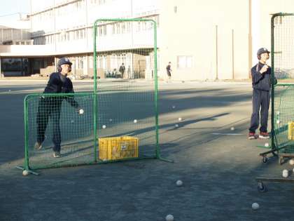 朝練習の様子です。野球部はバッティングの練習で朝から快音を響かせていました。