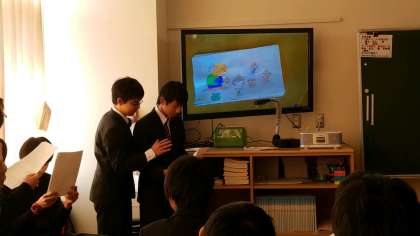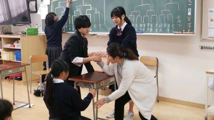 本日の5時間目、2年生の各クラスではレクリエーション大会が行われました。一発芸、ハンカチ落とし、ダンスの披露、寸劇…などなど、思い思いの発表をしています。中にはクラスメイトのモノマネをしたり、先生と腕相撲勝負をするクラスも!
