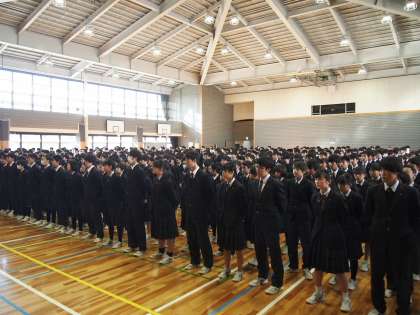それからこの2学期にもうひとつ、フナキボのすごい集団力を再発見することができました。朝礼が始まる前、私を含め誰ひとり先生が生徒の前に立たずに整列準備ができるかをやってみようと教務主任の大居先生とあらかじめ相談をし、今月10日の生徒会朝礼の時に実行してみました。12月に入って朝の寒さもあり、登校時間が全体的に遅くなっているのでほんの少し心配をしていたのです。しかし、チャイムがなる1分少し前、それまで聞こえていた雑談が、校庭側に並ぶ3年生からまるで波が全体を包み込みこむように静かになり、全体が静寂に包まれました。