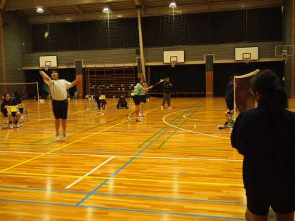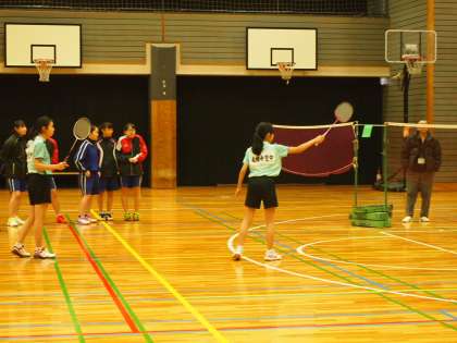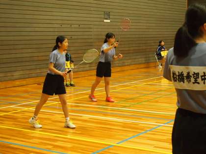 冬休みに入って1日目の今日、体育館ではバドミント部が千歳中と練習試合をしています。校庭も寒いですが、体育館は底冷えがする寒さ。そんな中でもフナキボ生は試合のユニフォームで頑張っています。