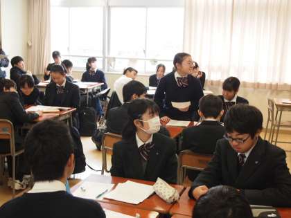 2年生の道徳の授業です。資料を読んで思いやりのの心について自分の考えと友達の考えを比較し、話し合いを通じてより深く追求するという内容です。2年生になると資料を読み込む姿勢や話し合いの態度にもより成長を感じます。