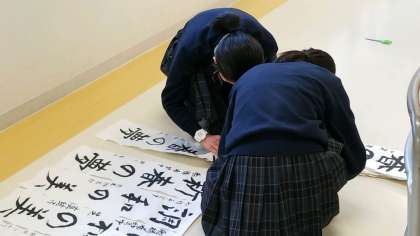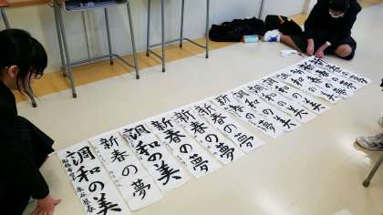 書き初めにはそれぞれの個性がよく出ています。ぜひ授業の合間や行き帰りの時間に眺めてみてください。