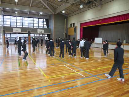 昼休みの体育館では、体育委員が企画したレクを行っています。今日は1年1組と2組が合同でドッジボールを行いました。体育委員の皆さん、楽しいレクをありがとうございます。(田村真)